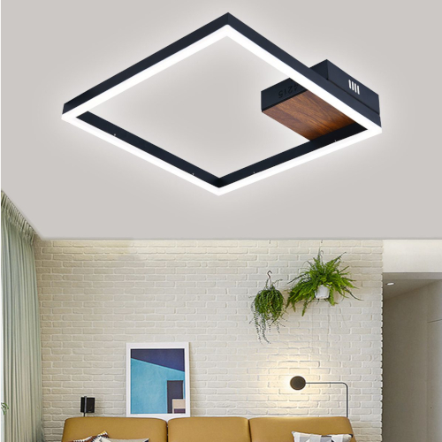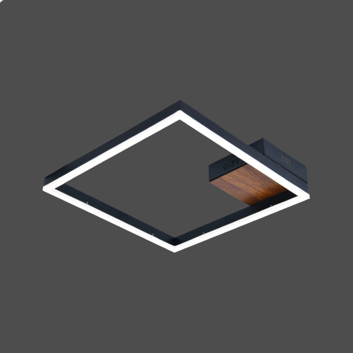 Lustră modernă cu o putere de 58W, prevăzută cu un pătrat decorativ. Designul său contemporan este evidențiat de carcasa de culoare neagră, conferind un aspect elegant și versatil, ideal pentru spații moderne. Dispune de trei funcții de iluminare (cald, rece, neutru), controlabile prin telecomandă inclusă, pentru un plus de confort și personalizare a atmosferei.