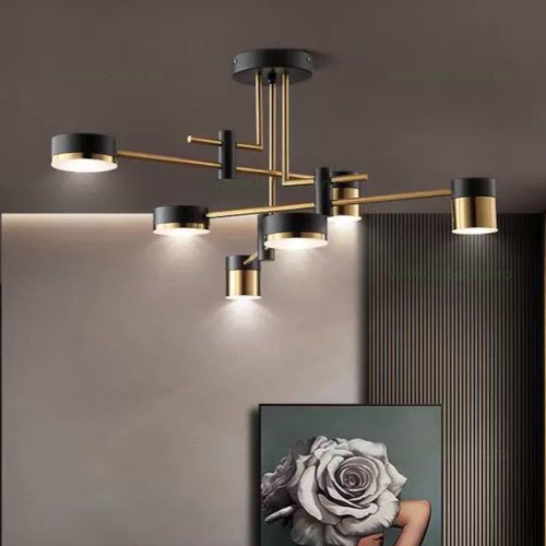 Lustra LED LZ4215-3+3 este o piesa de iluminat eleganta si moderna, perfecta pentru spatii precum living, dining sau dormitor. Cu design suspendat si accente in nuante de negru si auriu, aceasta ofera nu doar un aspect rafinat, ci si functionalitate avansata datorita celor 3 functii de iluminare si controlului complet prin telecomanda.