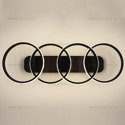 Lustră modernă aplicată, cu design elegant în finisaj negru. Carcasa sa combină forme geometrice contemporane cu detalii rafinate, potrivindu-se perfect într-un decor actual. Este echipată cu telecomandă care permite controlul a trei funcții: reglarea intensității luminii, schimbarea temperaturii de culoare (rece, caldă, naturală) și activarea modului de iluminare nocturnă. Ideală pentru living, dormitor sau birou, oferă un echilibru între funcționalitate și estetică moderna.
