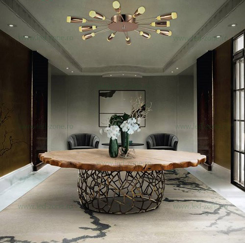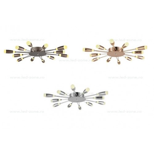 Lustra LED aplicata cu 12 Segmente are un design modern, este disponibila in carcasa maro, cupru, argintiu si ofera o lumina ambientala Alb Natural.