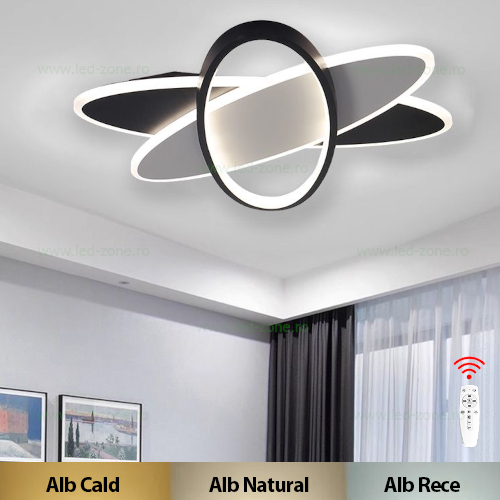 Lustra cu LED 3 functii va permite schimbarea din telecomanda a nuantelor de lumina intre alb cald, alb natural si alb rece si a intensitatii luminii (dimabil).