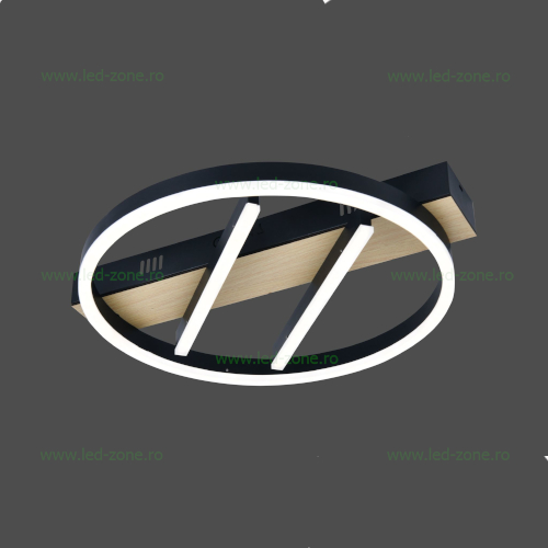 Lustră modernă cu o putere de 70W, prevăzută cu un cerc decorativ. Designul său contemporan este evidențiat de carcasa de culoare neagră, conferind un aspect elegant și versatil, ideal pentru spații moderne. Dispune de trei funcții de iluminare (cald, rece, neutru), controlabile prin telecomandă inclusă, pentru un plus de confort și personalizare a atmosferei.