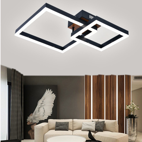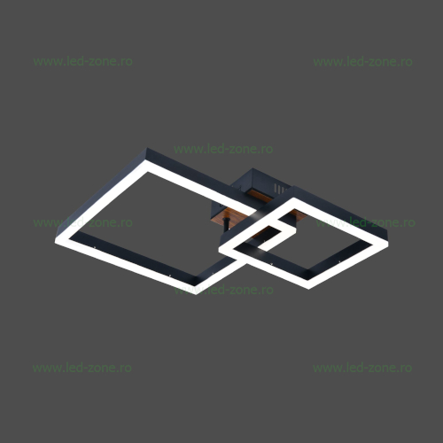Lustră modernă cu o putere de 72W, prevăzută cu doua pătrate decorative. Designul său contemporan este evidențiat de carcasa de culoare neagră, conferind un aspect elegant și versatil, ideal pentru spații moderne. Dispune de trei funcții de iluminare (cald, rece, neutru), controlabile prin telecomandă inclusă, pentru un plus de confort și personalizare a atmosferei.