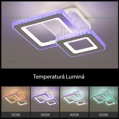 Lustra cu LED 3 functii va permite schimbarea din telecomanda a nuantelor de lumina intre alb cald, alb natural alb rece si RGB si a intensitatii luminii (dimabil).