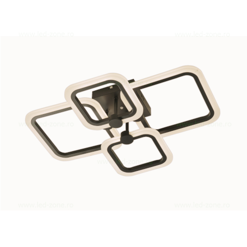 Lustră modernă cu o putere de 80W, prevăzută cu un pătrat decorativ. Designul său contemporan este evidențiat de carcasa de culoare neagră, conferind un aspect elegant și versatil, ideal pentru spații moderne. Dispune de trei funcții de iluminare (cald, rece, neutru), controlabile prin telecomandă inclusă, pentru un plus de confort și personalizare a atmosferei.