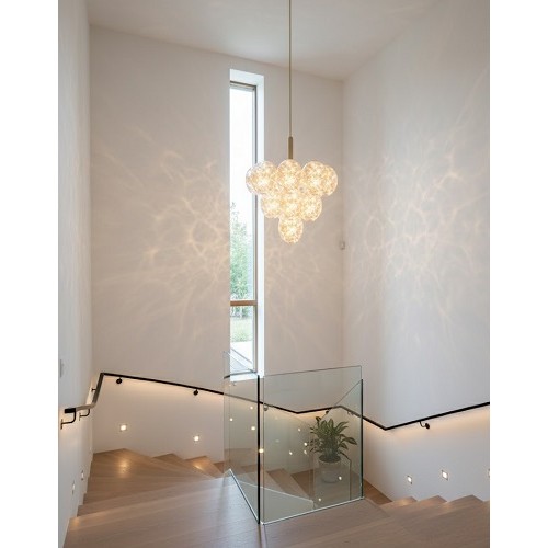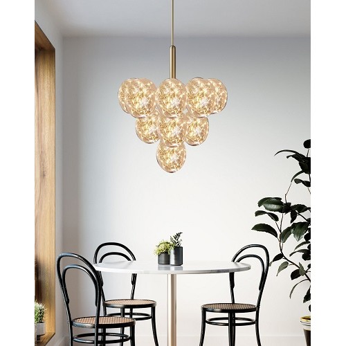 Lustra suspendată de 90W cu 13 globuri oferă o iluminare eficientă și plăcută, potrivită pentru spații moderne.