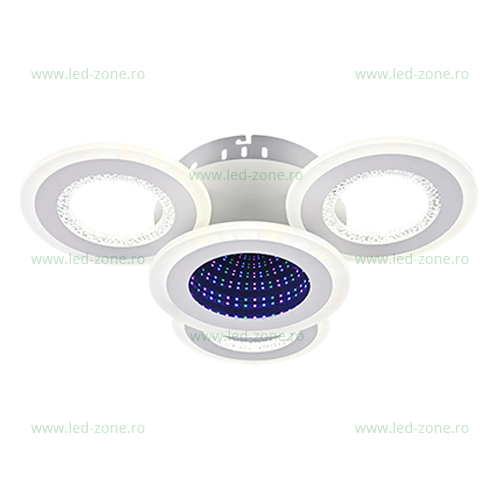Lustra cu LED 3 functii va permite schimbarea din intrerupator sau telecomanda a nuantelor de lumina intre alb cald, alb natural si alb rece.
