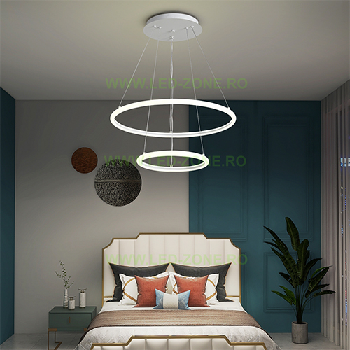 Lustra cu LED 3 functii va permite schimbarea din telecomanda sau telefon a nuantelor de lumina intre alb cald, alb natural si alb rece si a intensitatii luminii (dimabil).