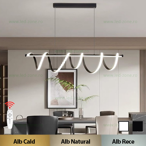 Lustra cu LED 3 functii va permite schimbarea din telecomanda a nuantelor de lumina intre alb cald, alb natural si alb rece si a intensitatii luminii (dimabil). Dupa ce s-a montat lustra corespunzator, se aprinde din intrerupator, apoi din telecomanda se tine apasat butonul SETUP (simbol WIFI) pentru cateva secunde, pana cand lustra va clipi de cateva ori. Telecomanda functioneaza numai dupa ce s-a realizat sincronizarea cu lustra.