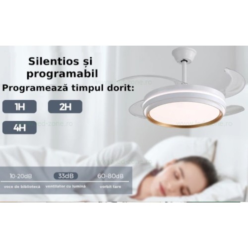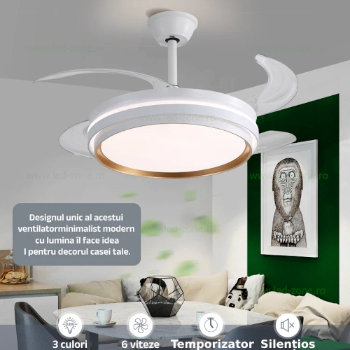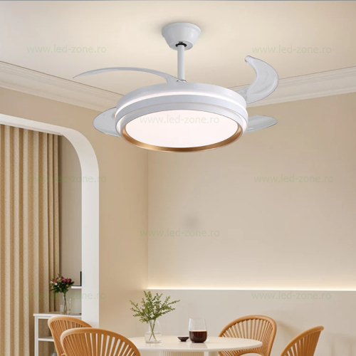 Lustra LED cu Ventilator si Telecomanda ofera 3 nuante de lumina alba (cald, natural, rece)
