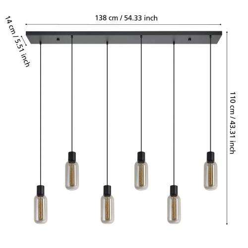 Specificatii Lustră MAIONE E27 6X4W IP20 1380mm 901006