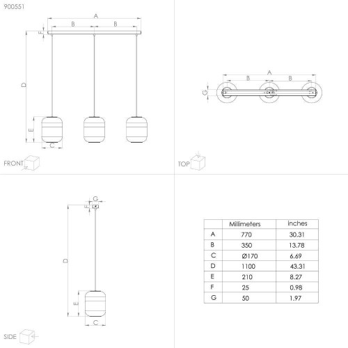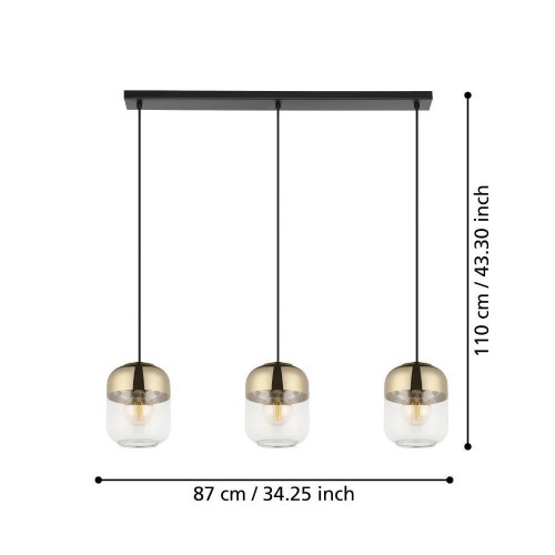 Lustră MARYVILLA 900551, E27, 3X40W, IP20, oțel negru, brunat, sticlă aburită, transparent, auriu