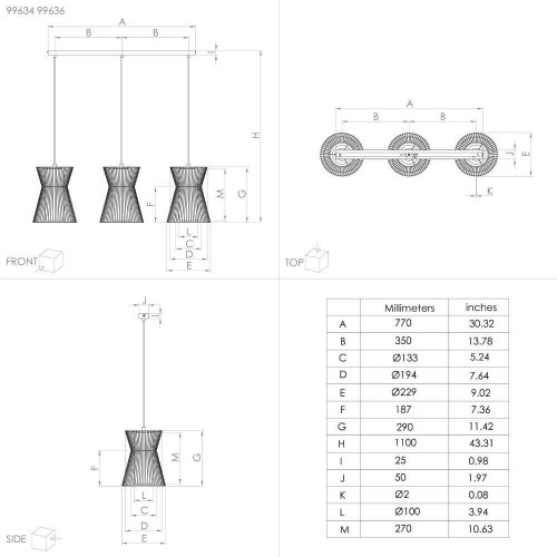 Lustră MASETA 99636, E27, 3X40W, IP20, oțel de culoare aurie, sticlă opal mat, alb