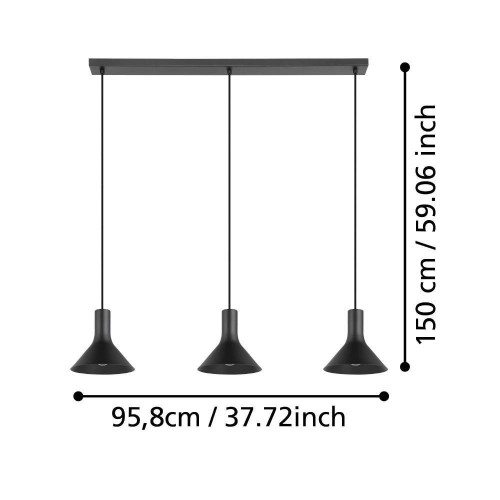 Lustră MORESCANA 390219, E27, 3X28W, IP20, oțel, negru