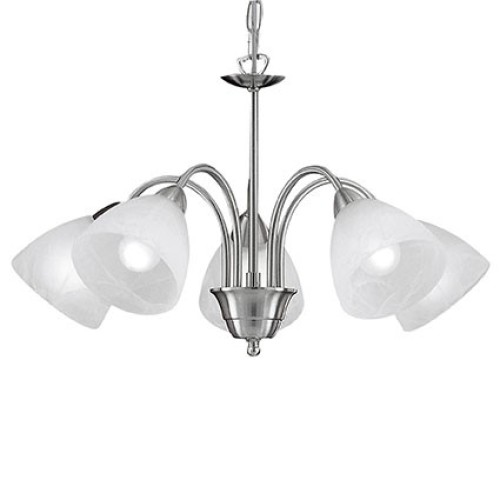 Lustră PASTO 13311, Ø520 mm, E14, 5X40W, IP20, oțel nichel mat, sticlă alabastru albă