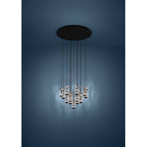 Lustră PIANOPOLI 2 390277, Ø500 mm, LED, 15X1,8W, 3000K, IP20, oțel negru, sticlă transparentă