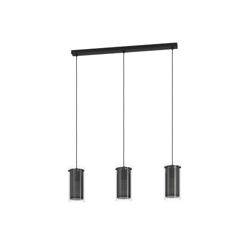 Lustră PINTO TEXTIL 1 900342, E27, 3X10W, IP20, oțel negru, sticlă, textil, transparent, negru