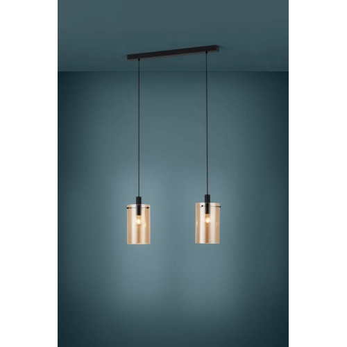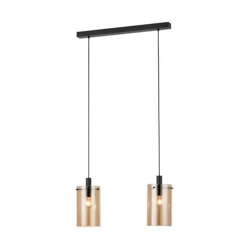 Lustră POLVERARA 39538, E27, 2X40W, IP20, oțel negru, sticlă aburită, chihlimbar
