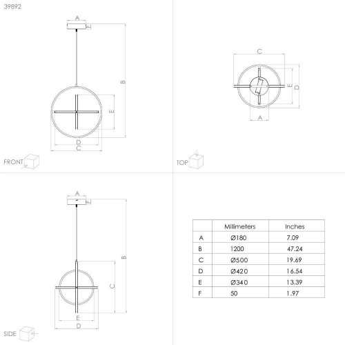 Lustră RETORNIO 39892, Ø500 mm, LED, 38W, 3000K, IP20, oțel, aluminiu negru, plastic alb