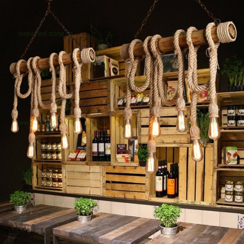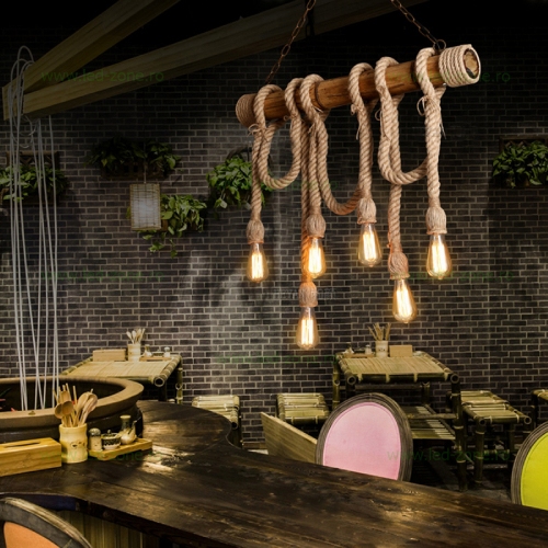 Lustra Rustic cu 6 Socluri si suport liniar din bambus este potrivita pentru iluminat decorativ.