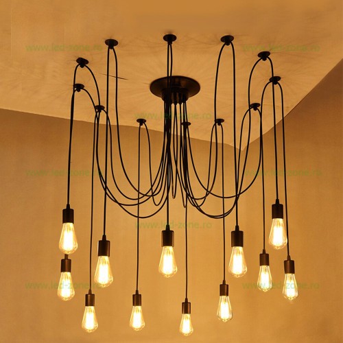 Lustra Spider cu 12 Socluri E27 Vintage este potrivita pentru iluminat decorativ.