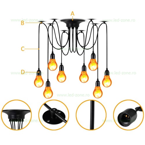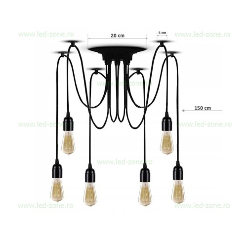 Specificatii Lustra Spider 6 Socluri E27 Vintage