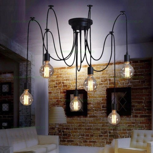 Lustra Spider cu 6 Socluri E27 Vintage este potrivita pentru iluminat decorativ.