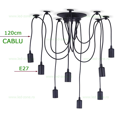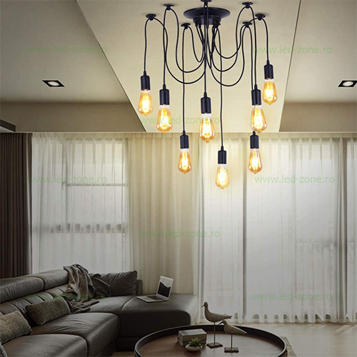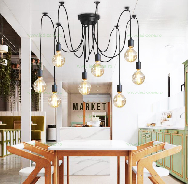 Lustra Spider cu 8 Socluri E27 Vintage este potrivita pentru iluminat decorativ.