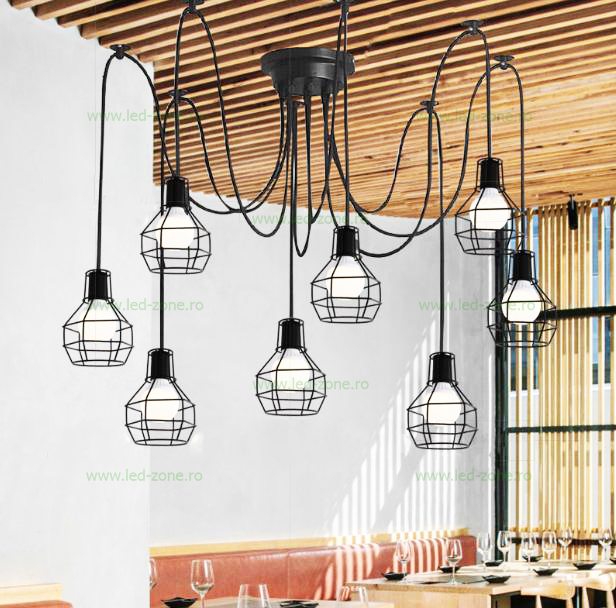 Lustra Spider cu 8 Socluri E27 Vintage este potrivita pentru iluminat decorativ.