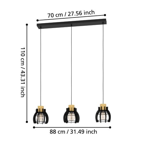 Lustră STILLINGTON 1 43925, E27, 3X40W, IP20, oțel, lemn, negru, maro
