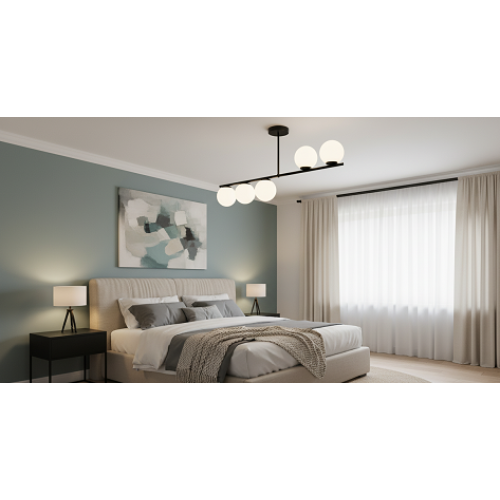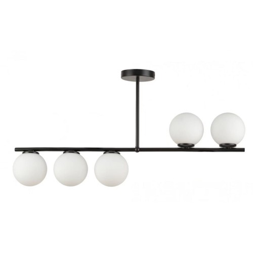 Lustra suspendată cu 5 globuri mate are un design modern și elegant, potrivit pentru diverse tipuri de interioare.