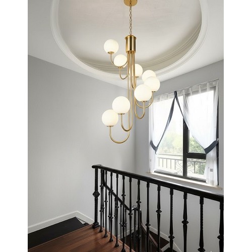 Lustra suspendată cu 8 becuri E27 este o piesă de iluminat elegantă și impunătoare, ideală pentru spații generoase precum livinguri, săli de mese sau holuri înalte. Cu un design sofisticat și finisaj auriu, adaugă un plus de rafinament și stil oricărui interior modern sau clasic.