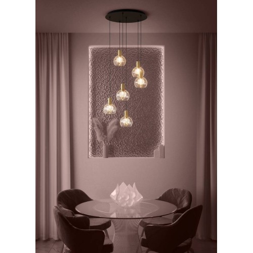 Lustră TERQUE 390279, Ø540 mm, LED, 6X5,4W, 3000K, IP20, oțel, sticlă transparentă