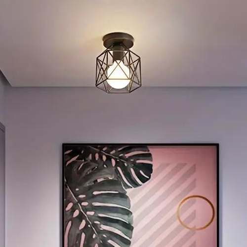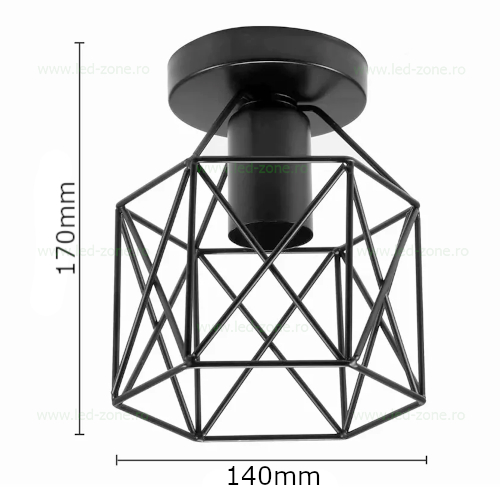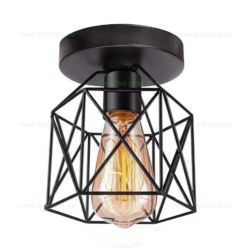 Lustra vintage aplicată pe tavan este o piesă de iluminat decorativă cu un design industrial simplu și autentic. Realizată din metal vopsit negru, cu abajur tip grilaj, această lustră oferă un aspect robust și retro, potrivit pentru interioare amenajate în stil vintage, loft sau industrial.