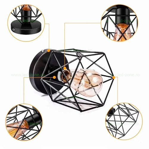 Abajur tip grilaj din metal negru, cu finisaj mat