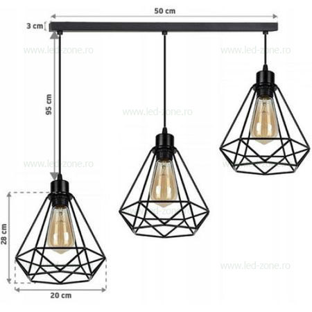 Specificatii Lustra Vintage 3 Pendule Suport Liniar