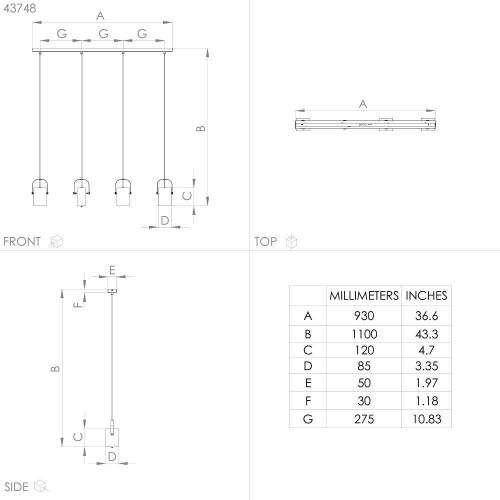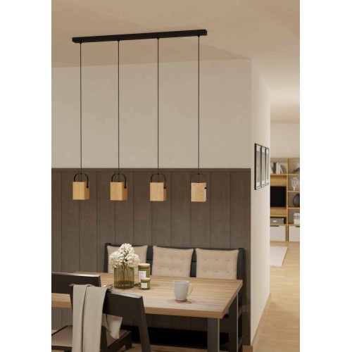 Lustră vintage AYLES 43748, GU10, 4X3W, IP20, oțel negru, lemn, maro
