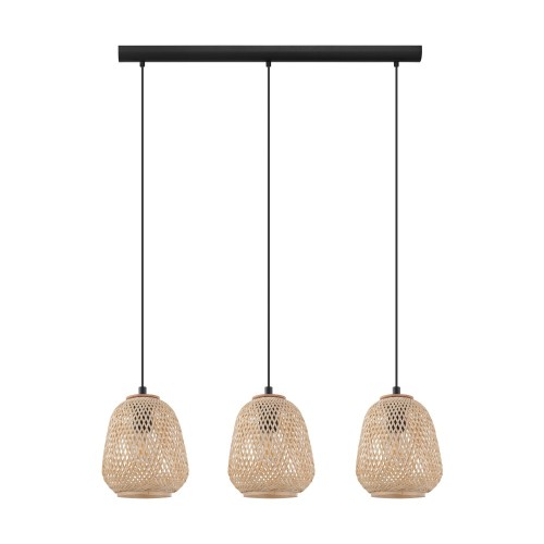 Acest corp de iluminat cu pandantiv din seria DEMBLEBY este realizat din lemn natur și negru. Are nevoie de trei iluminatoare E27 pentru a străluci.