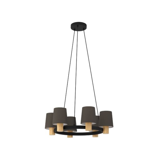Lustră vintage EDALE 43781, Ø700 mm, E27, 6X40W, IP20, oțel, lemn negru, maro, textil cappuccino