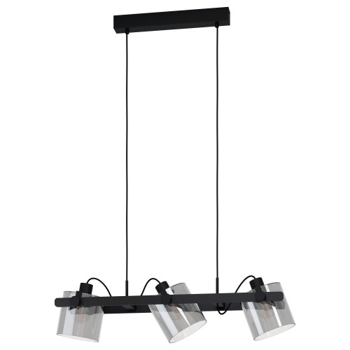 Lustră vintage HORNWOOD 2 43606, E27, 3X40W, IP20, oțel, lemn negru, sticlă aburită, negru transparent