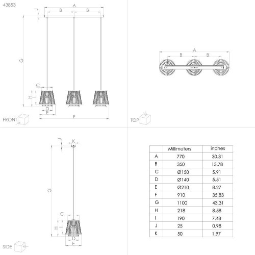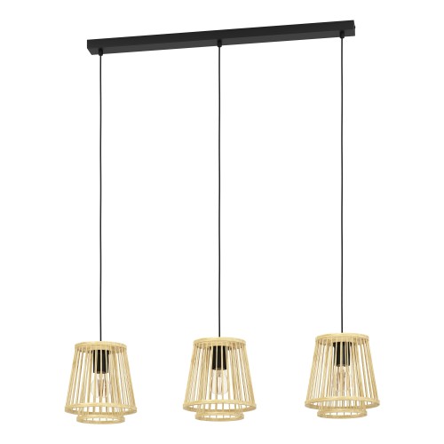 Lustră vintage HYKEHAM 43853, E27, 3X40W, IP20, oțel negru, lemn, natural