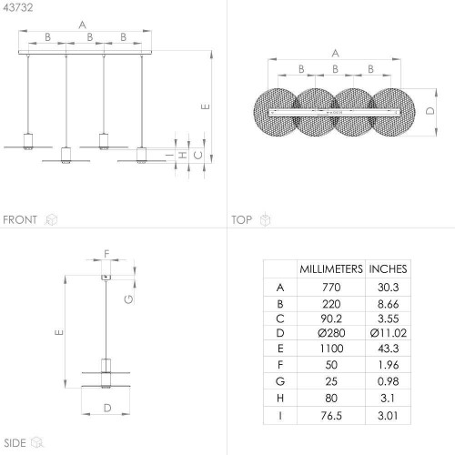 Lustră vintage IKESTON 43732, E27, 4X40W, IP20, oțel, negru