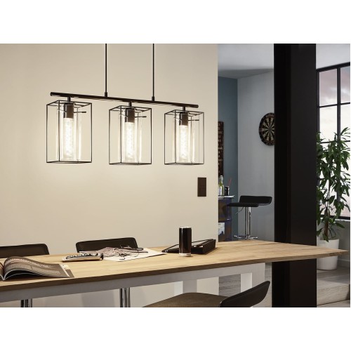 Lustră vintage LONCINO 49496, E27, 3X60W, IP20, oțel negru, sticlă fumurie, negru transparent