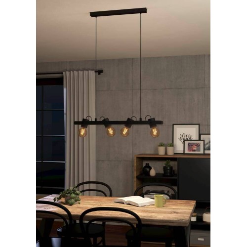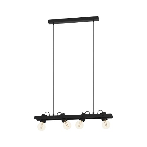 Lustră vintage PLIMSOLL 43848, E27, 4X15W, IP20, oțel, lemn, negru