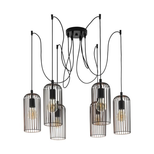Lustră vintage ROCCAMENA 49643, E27, 6X60W, IP20, oțel, negru, cupru
