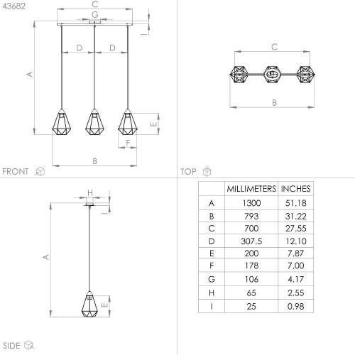 Lustră vintage TARBES 43682, E27, 3X60W, IP20, oțel, alamă matisată