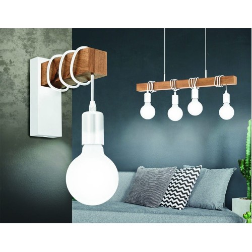 Lustră vintage TOWNSHEND 33164, E27, 4X60W, IP20, oțel alb, lemn, maro