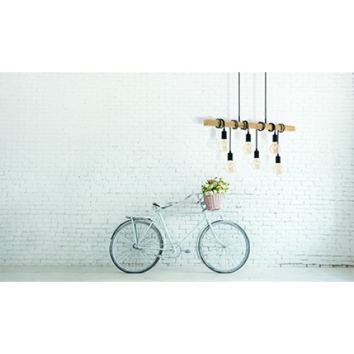 Lustră vintage TOWNSHEND 95499, E27, 6X60W, IP20, oțel, lemn negru, maro, lemn, maro