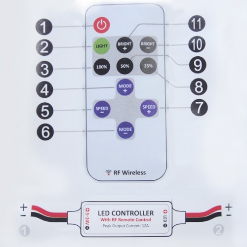 Mini variatorul se foloseste in circuite de benzi LED cu o singura culoare astfel :
