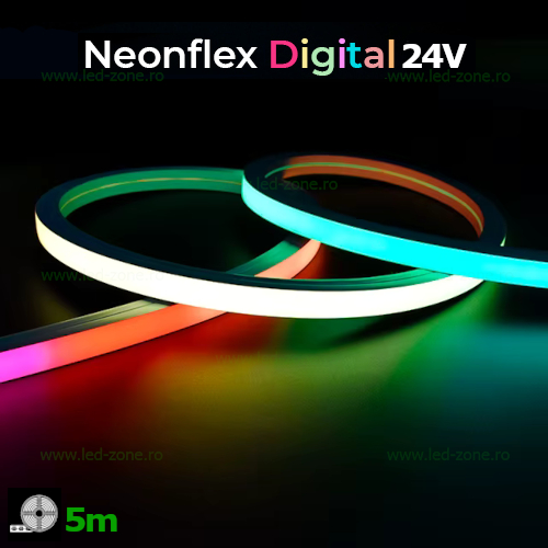 Descriere Neonflex LED 24V 12W/ML 14x14mm RGB Digital Rola 5M